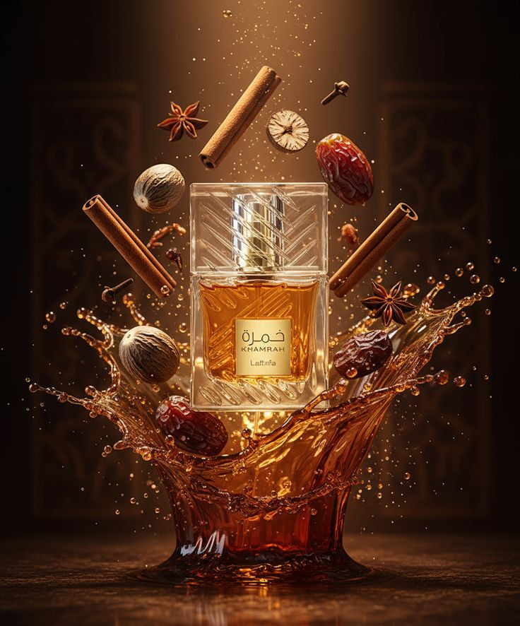 Khamrah de Lattafa Perfumes est un parfum Orientale Épicé pour homme et femme. Khamrah a été lancé en 2022. Les notes de tête sont Cannelle, Noix de muscade et Bergamote; les notes de coeur sont Dates, Praliné, Tubéreuse et Mahonial; les notes de fond sont Vanille, Fève de tonka, Amberwood